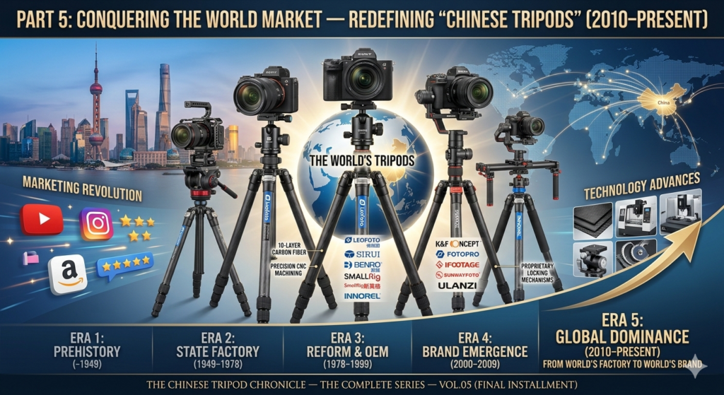 The arrival of a new generation of brands, the mirrorless camera revolution, the democratization of marketing through social media and YouTube, and the complete dismantling of the “Chinese tripod = cheap” stigma — this fifteen-year period is the story of how China’s tripod industry evolved from “the world’s factory” into “the world’s brand.”